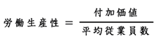 労働生産性とは、従業員1人当たり、どれだけの付加価値を生み出しているのかを表す指標です。労働生産性が高いほど1人辺りの従業員が生み出す付加価値が高いことになります。